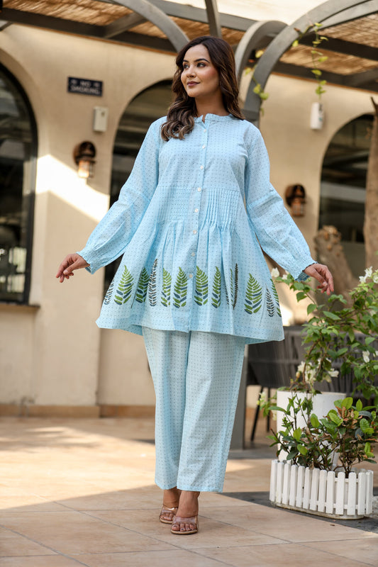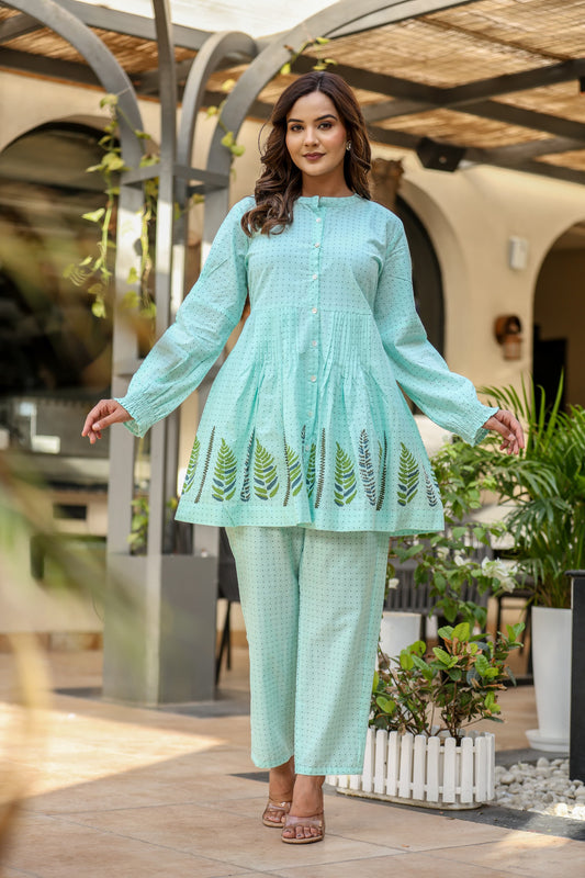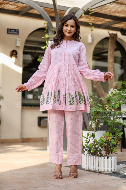Embroidered Cotton Coord Set for Women | Two-Piece Outfit with Pant