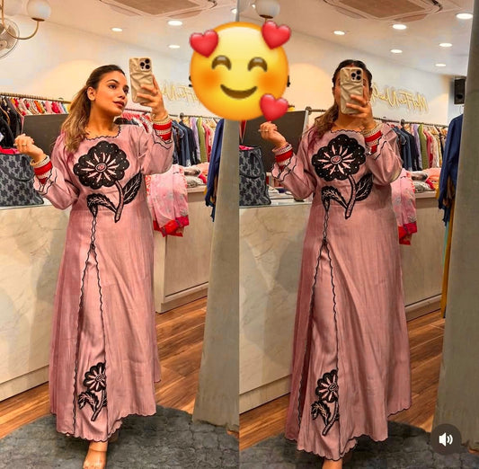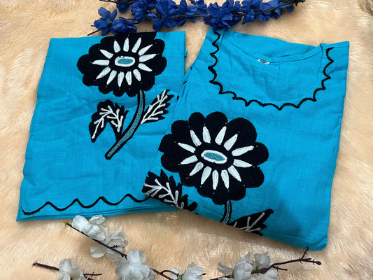 Cotton Slub Embroidered Kurti Pant Cord Set with Adda Beads Work
