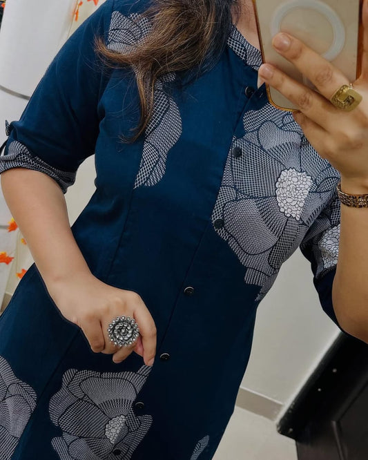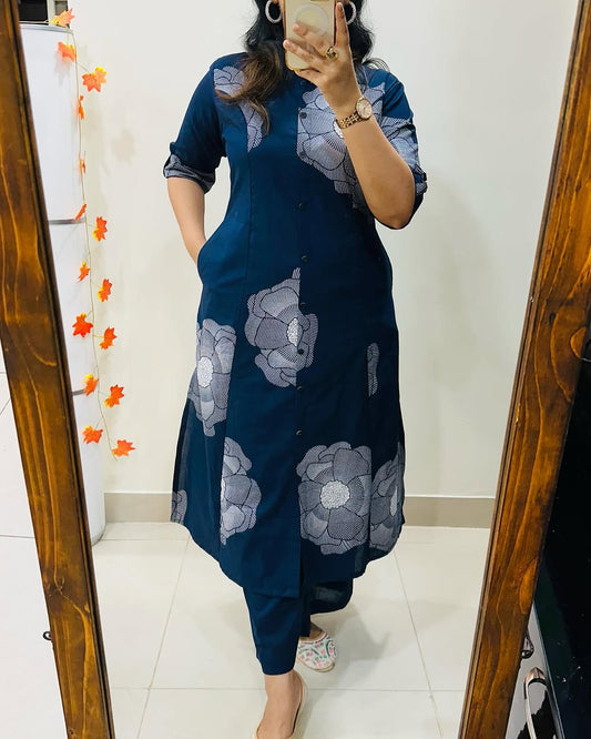 Floral Cotton Co-ord Set: A-Line Kurti with Ankle-Length Palazzo