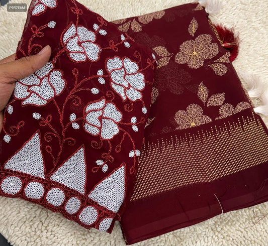 Cotton Chikankari Sequin Work Long Kurti with Chanderi Dupatta