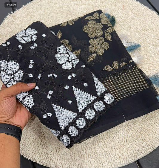 Cotton Printed Suit Set with Embroidered Neckline | 60x60 Cotton