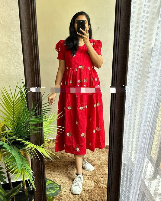 Cotton 60/60 Embroidery Work Kurti with Pant | Fully Stitched Set