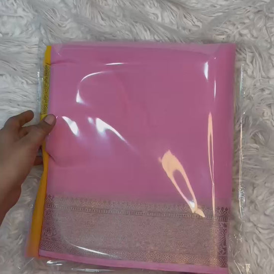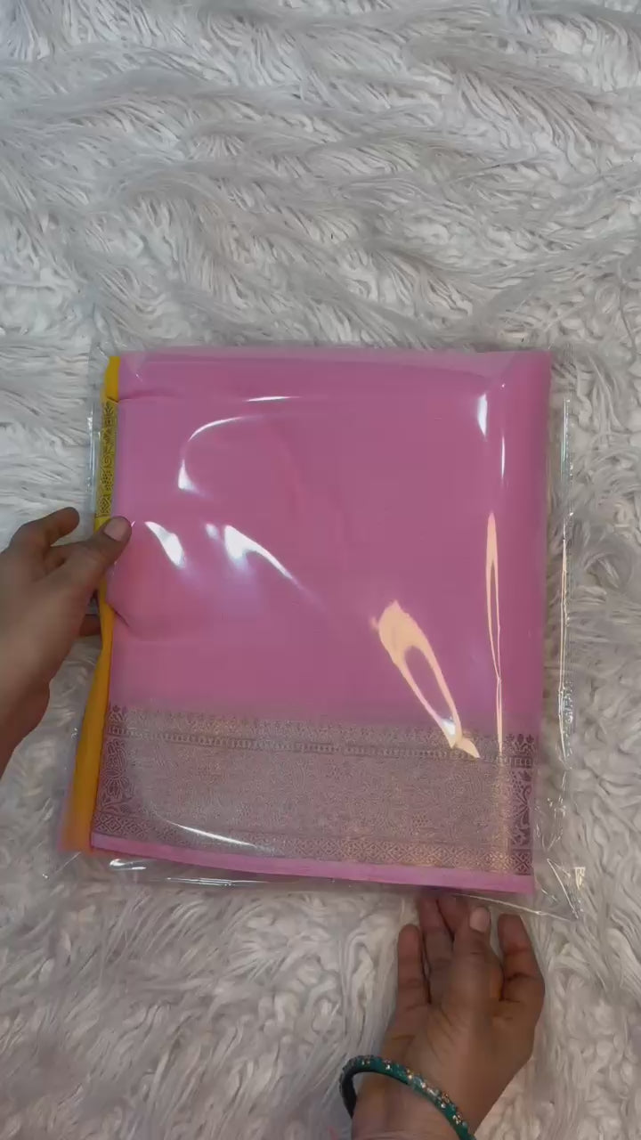 Shaded Chiffon Saree with Jacquard Border & Contrast Blouse