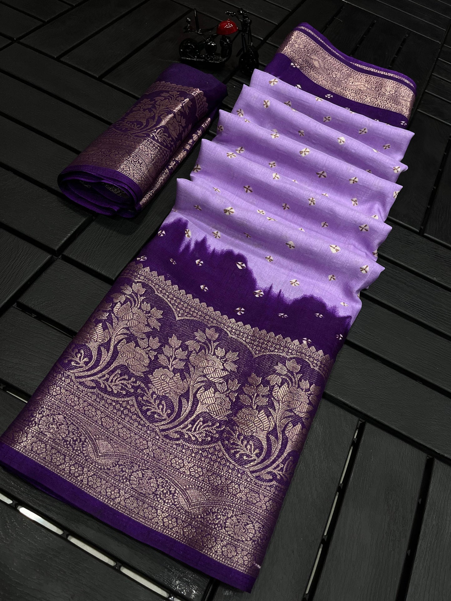 This saree comes with a perfectly matching running blouse, allowing you to create a cohesive and effortlessly stylish look.
