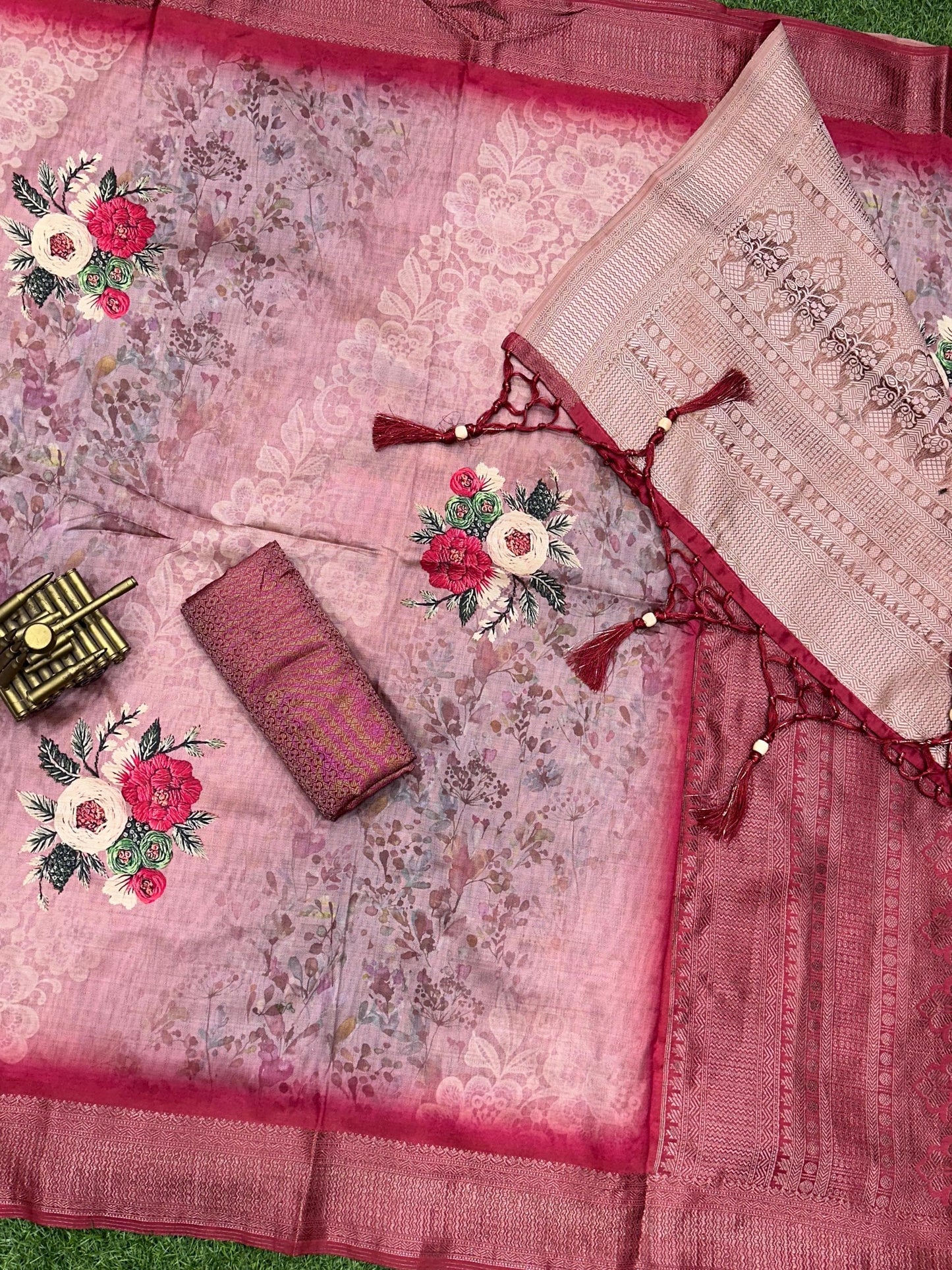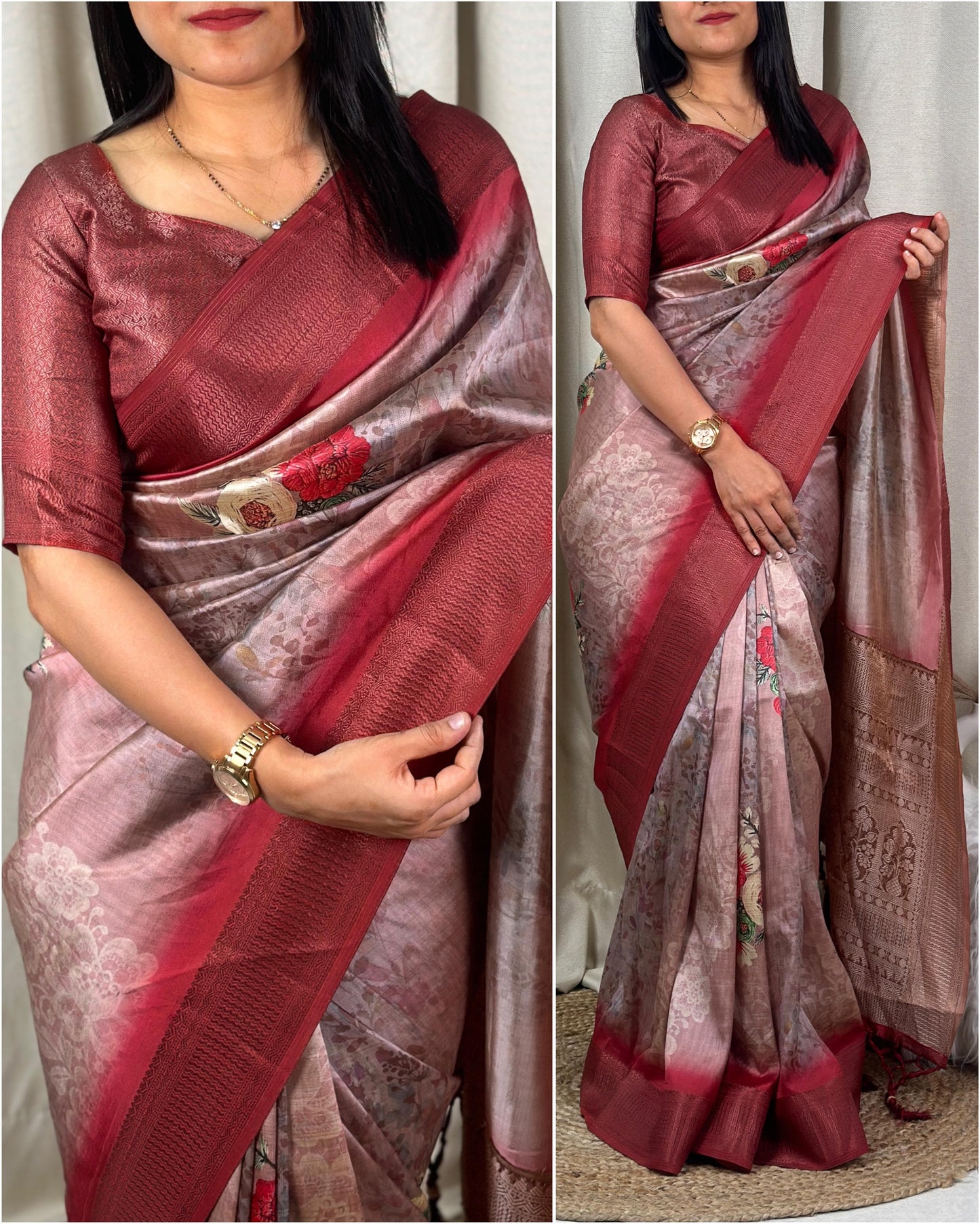 Bombay Satin Jacquard Saree with Digital 3D Print