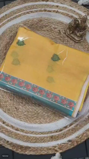 Linen Blooming Saree with Kalamkari Print & Tassels