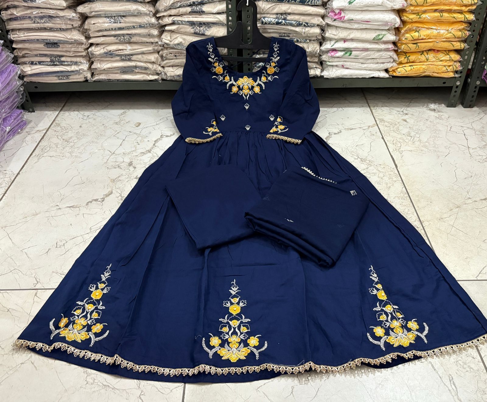 • Work: Intricate floral embroidery on neck, sleeves & kurti