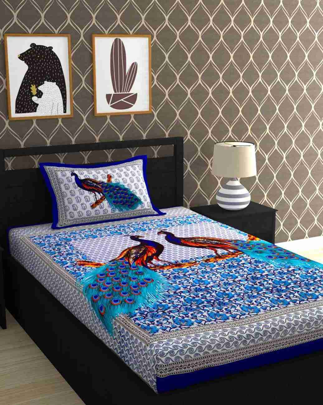 Printed Cotton Single Bedsheet with Pillow Cover (63x90 Inch)