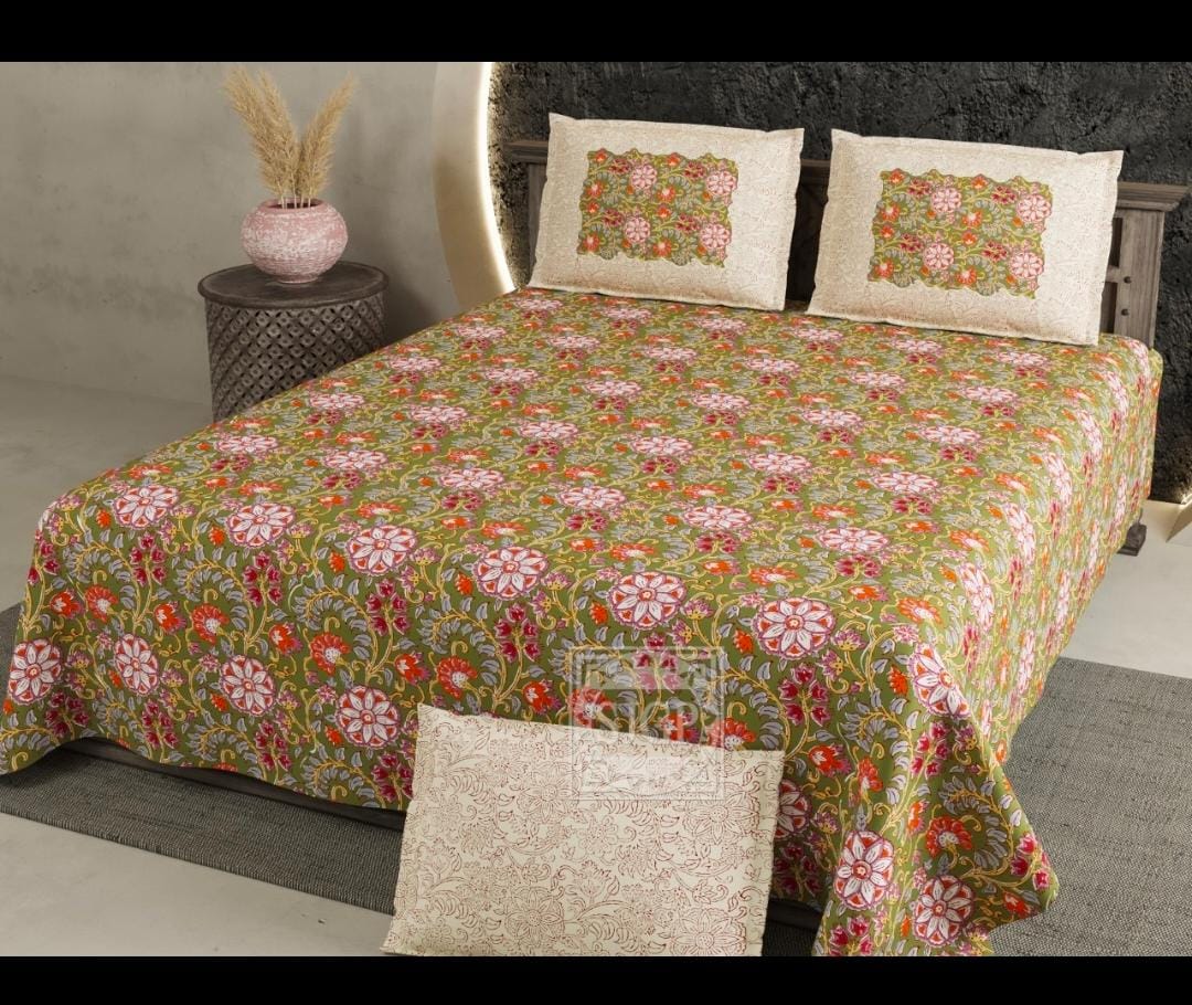 Made from soft and breathable cotton fabric, this bedsheet set provides a cozy haven for relaxation. The intricate design and attention to detail make it a statement piece in any bedroom, effortlessly blending with various decor styles.