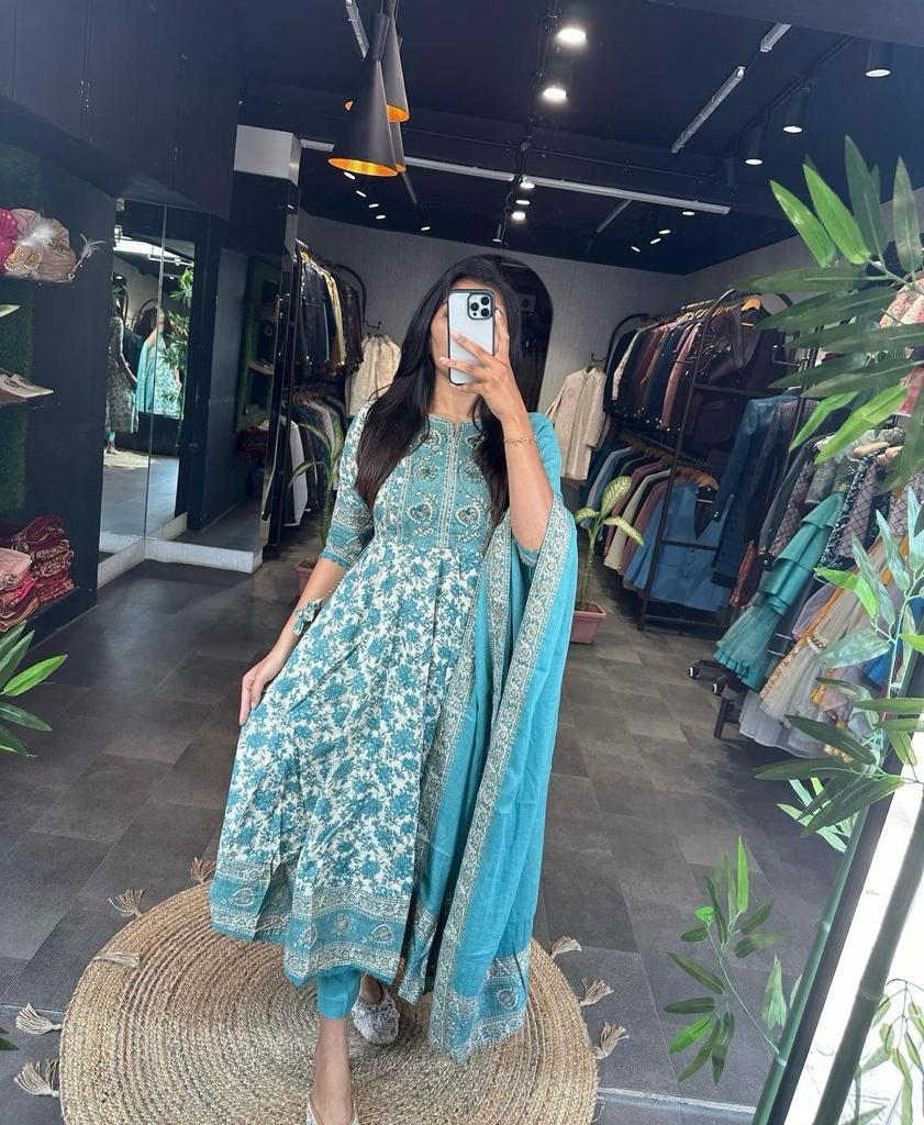 Step into a world of timeless grace with our exquisite Anarkali kurta set, meticulously designed to elevate your style quotient. Crafted from luxurious Rayon and adorned with traditional Sanganeri print, this ensemble is a perfect blend of sophistication and cultural richness. The meticulous Adda work detailing adds an extra layer of charm, making it a standout choice for special occasions. Here's what makes this ensemble a must-have: