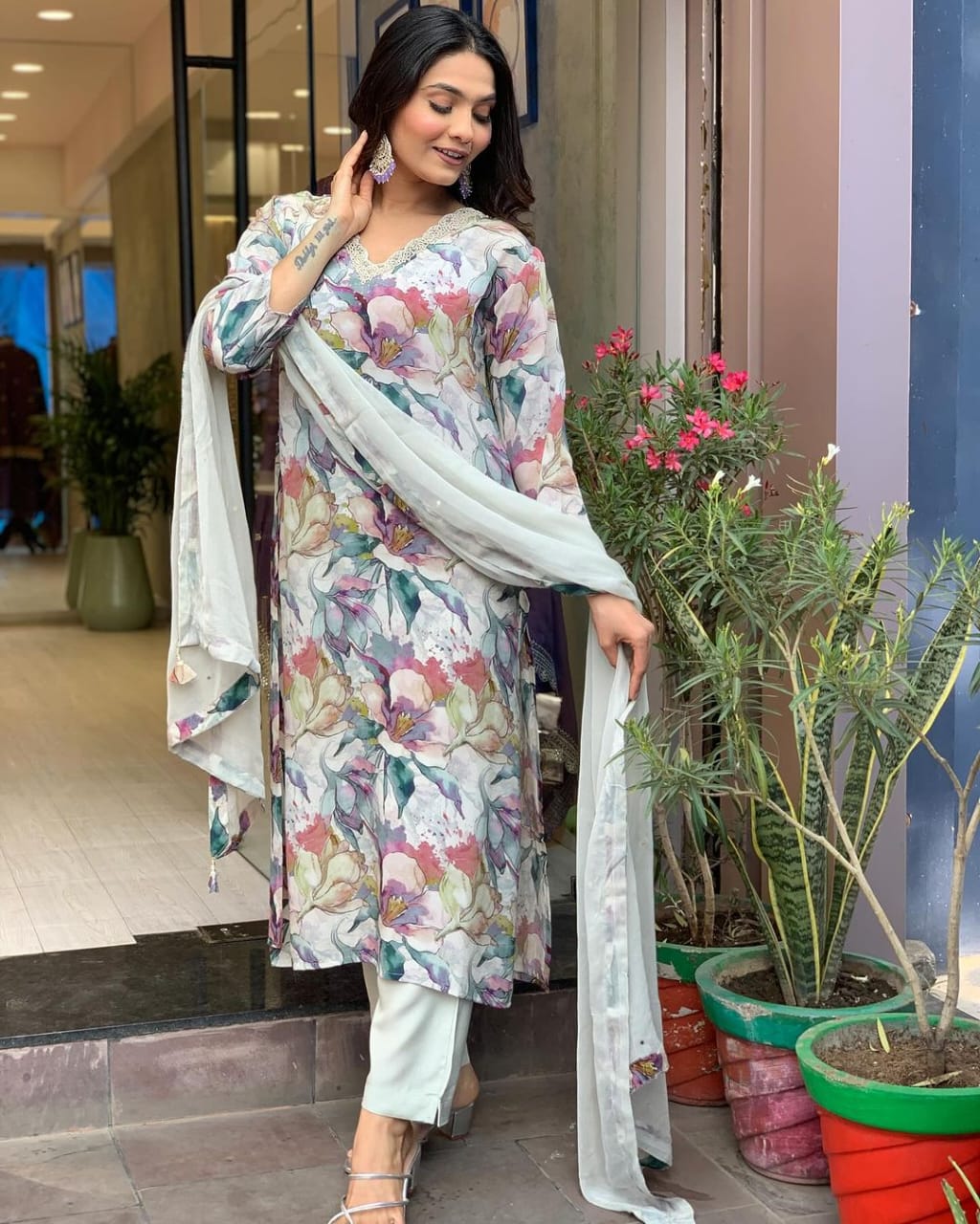 - Dupatta: Beautifully crafted Georgette dupatta with striking digital prints, adding a touch of sophistication to the attire.