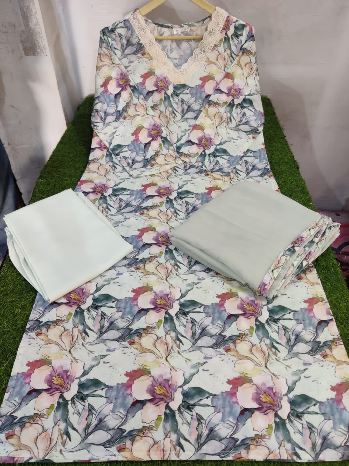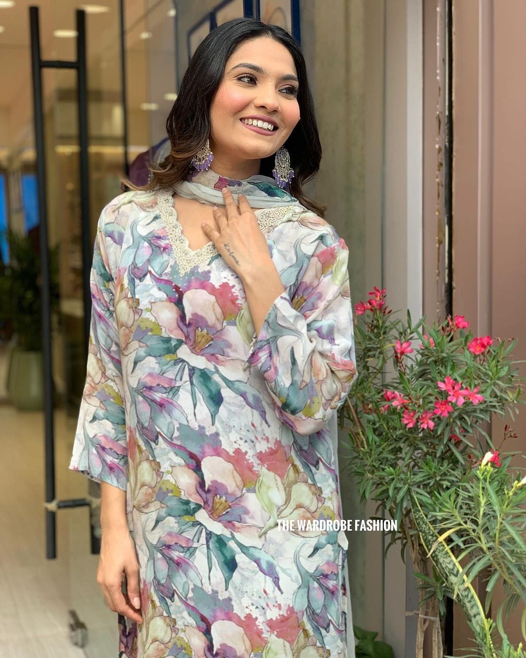 - Material: Kurti is made from high-quality Muslin fabric adorned with intricate digital print designs.
