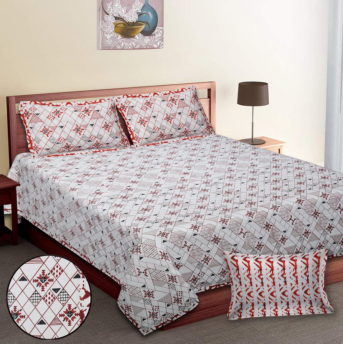 King-Size Bed Sheet Set with 2 Pillow Covers (Cotton Autoloom Fabric)