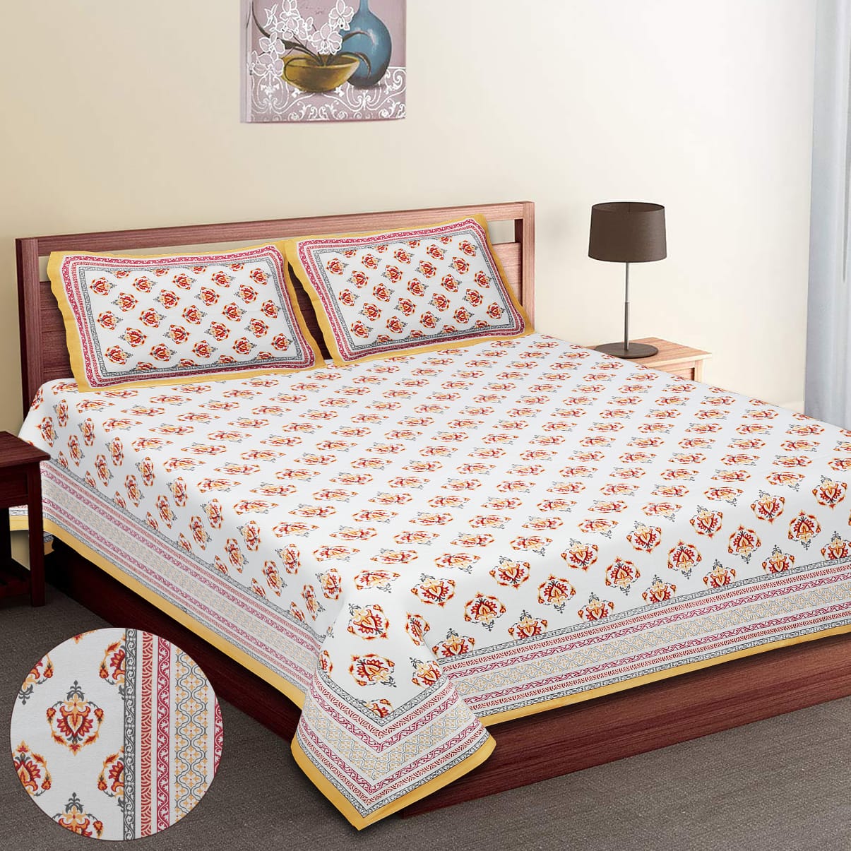 King-Size Bed Sheet Set with 2 Pillow Covers (Cotton Autoloom Fabric)