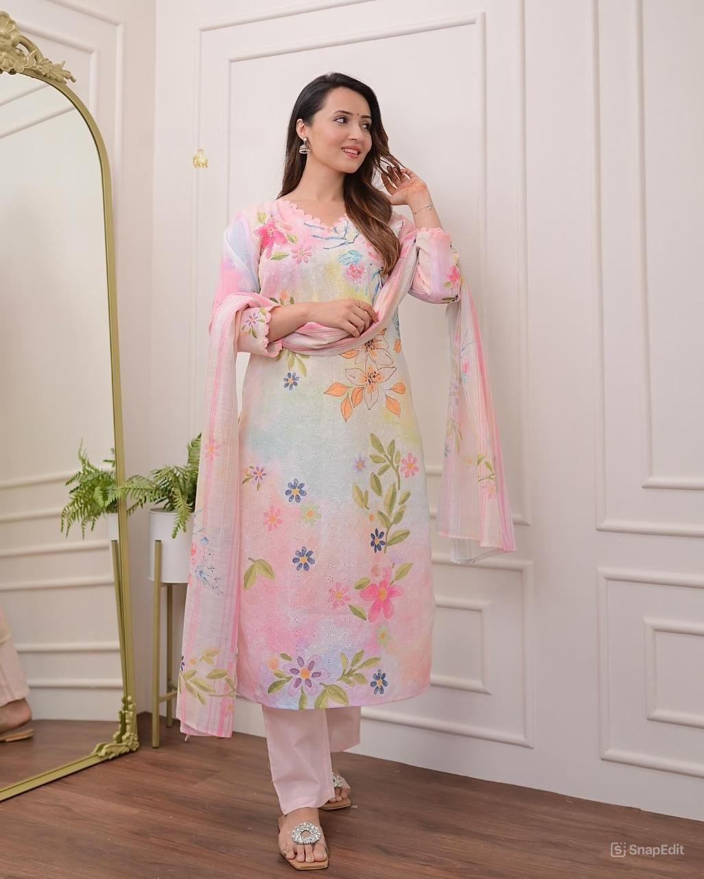 - Luxurious Fabrics: Experience the softness and breathability of cotton fabric, complemented by the rich luster of silk in the pant and dupatta.