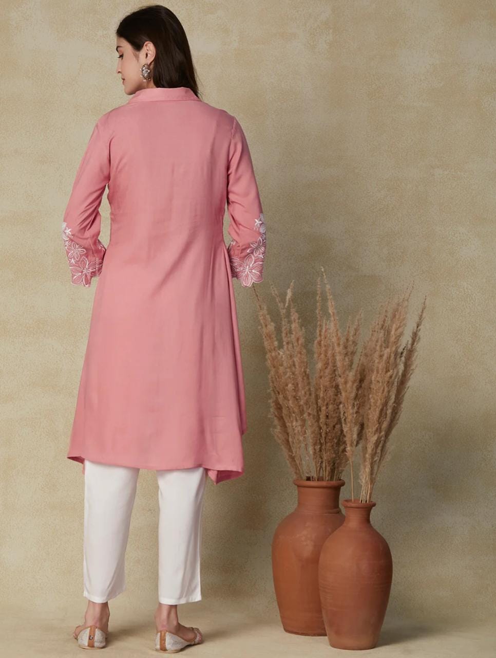 Our Kurti showcases meticulous hand-embedded work, creating a unique and charming design that sets it apart. The lace detailing adds a touch of femininity, making it an ideal choice for both casual and semi-formal occasions.
