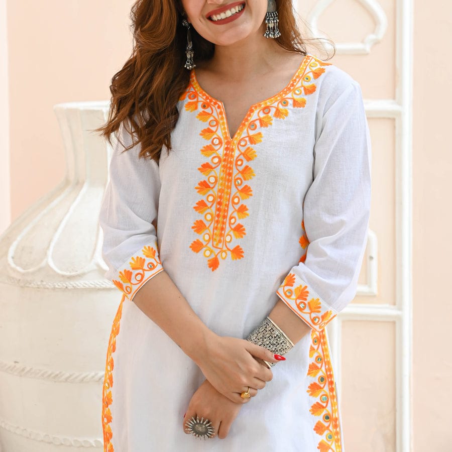 Cotton Kurta and Dhoti Pant Set with Aari Work – Tulip Style