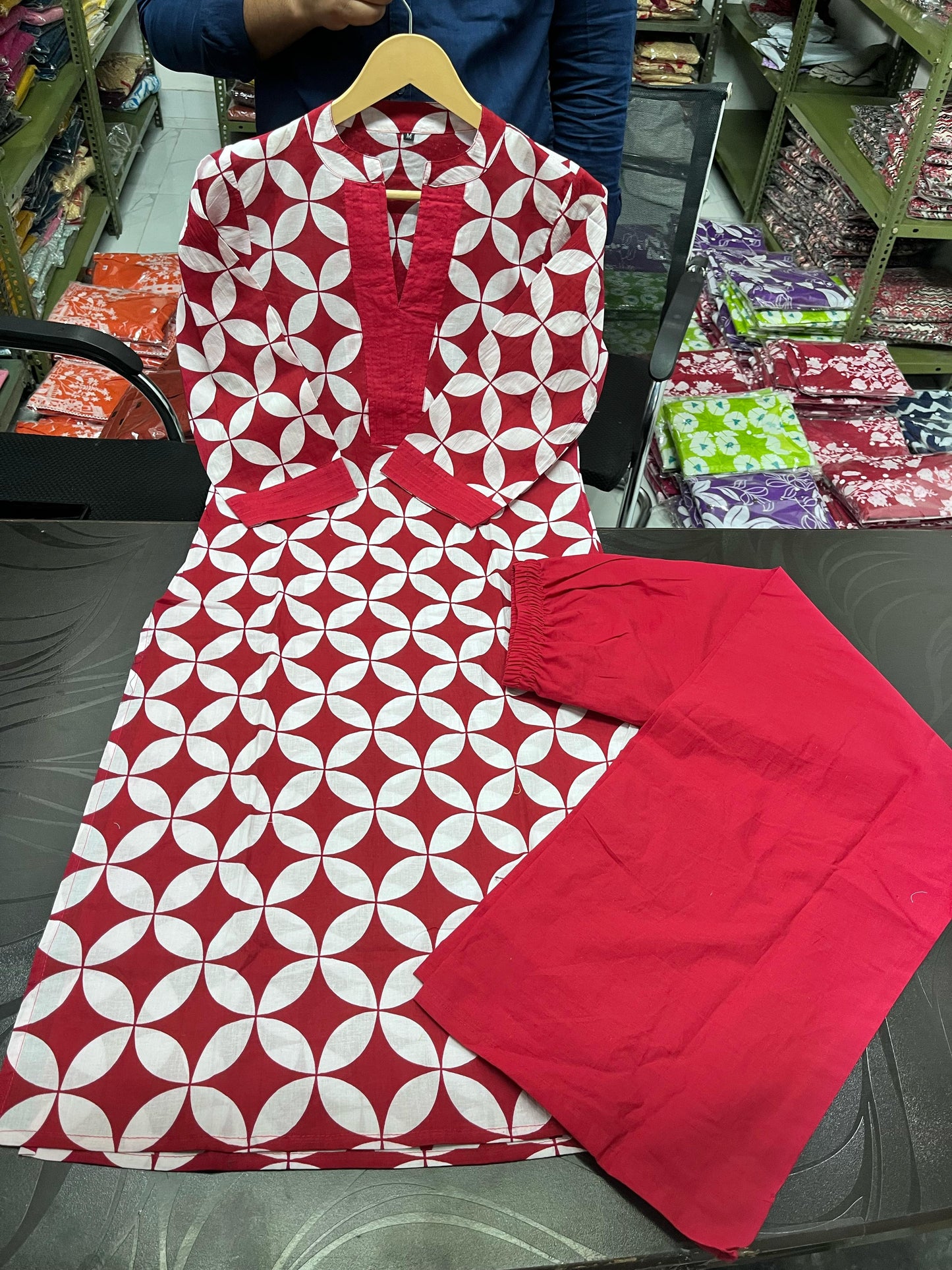 Printed Cotton Kurta Pant Plazo Set (Kurta 46", Pant 37") - 60*60 Cotton
