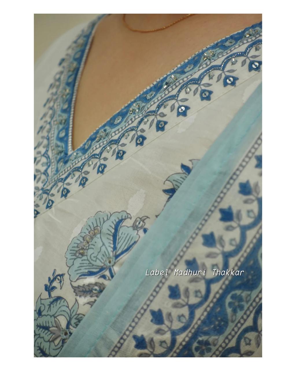 White-Grey Floral Handworked Afghani Suit Set