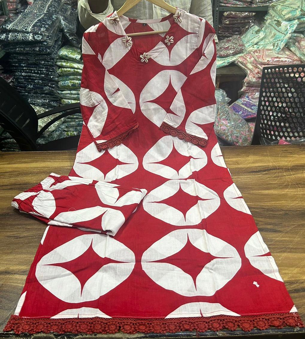 š„° Elevate your ethnic wardrobe with our exquisite cotton-printed Kurta Cord Set, beautifully adorned with delicate Chicken Lace detailing. Crafted to perfection, this ensemble combines comfort, style, and timeless charm.
