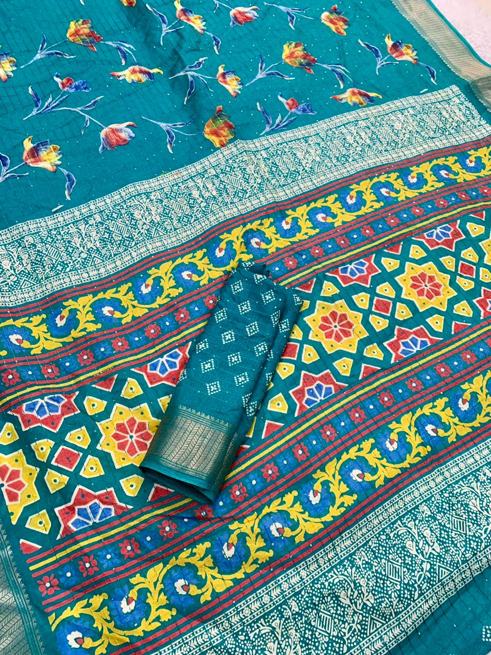Dola Silk Saree with Jacquard Border and Running Blouse