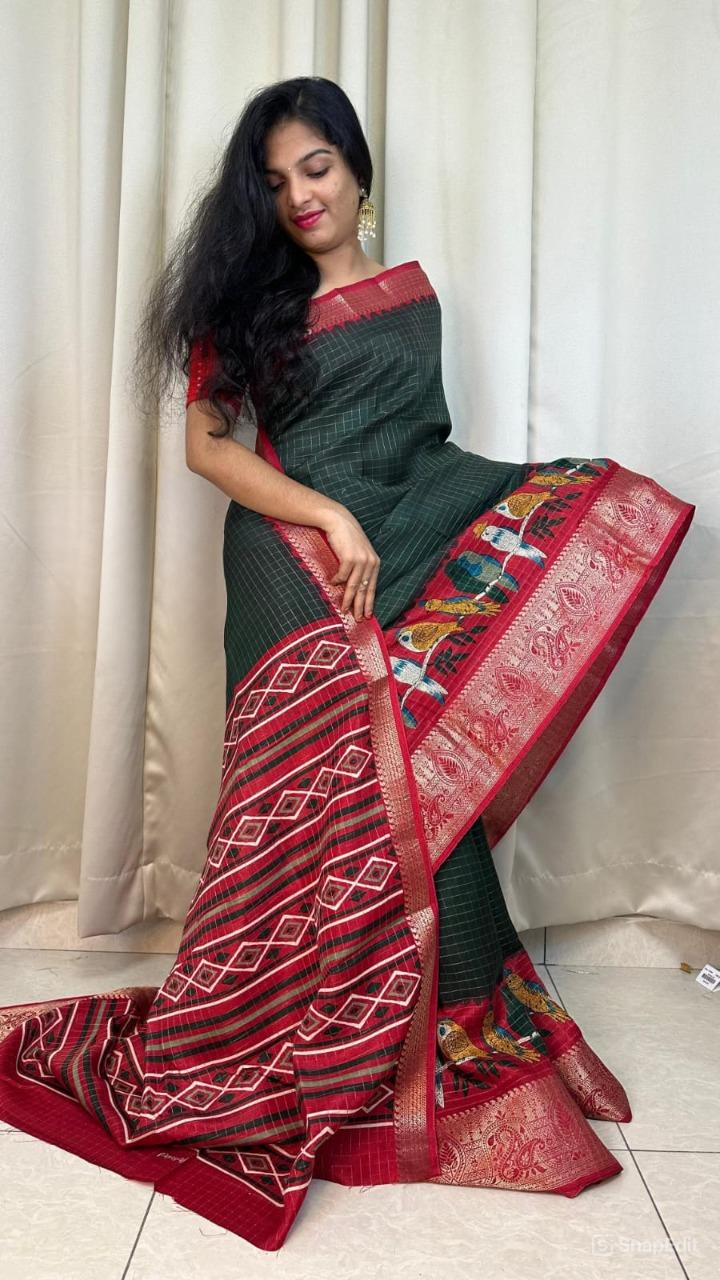 Dola Silk Saree with Jari Chex Design & 9" Jacquard Border (Running Blouse Included)