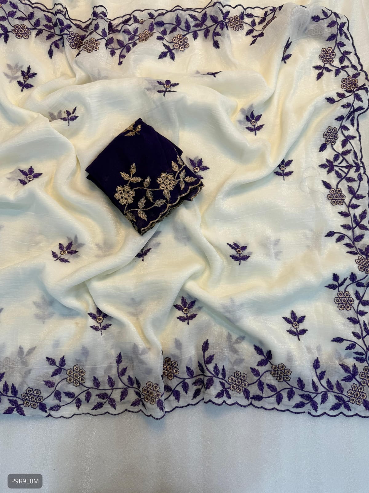 Crunchy Saree with Embroidery Work & Rangoli Blouse