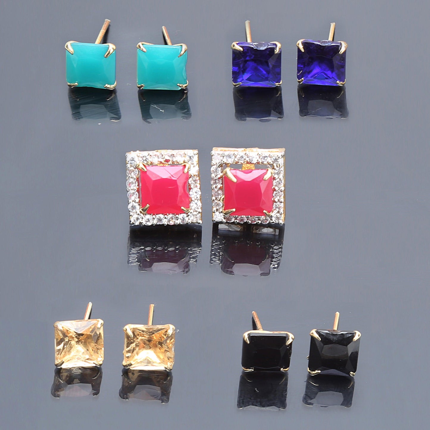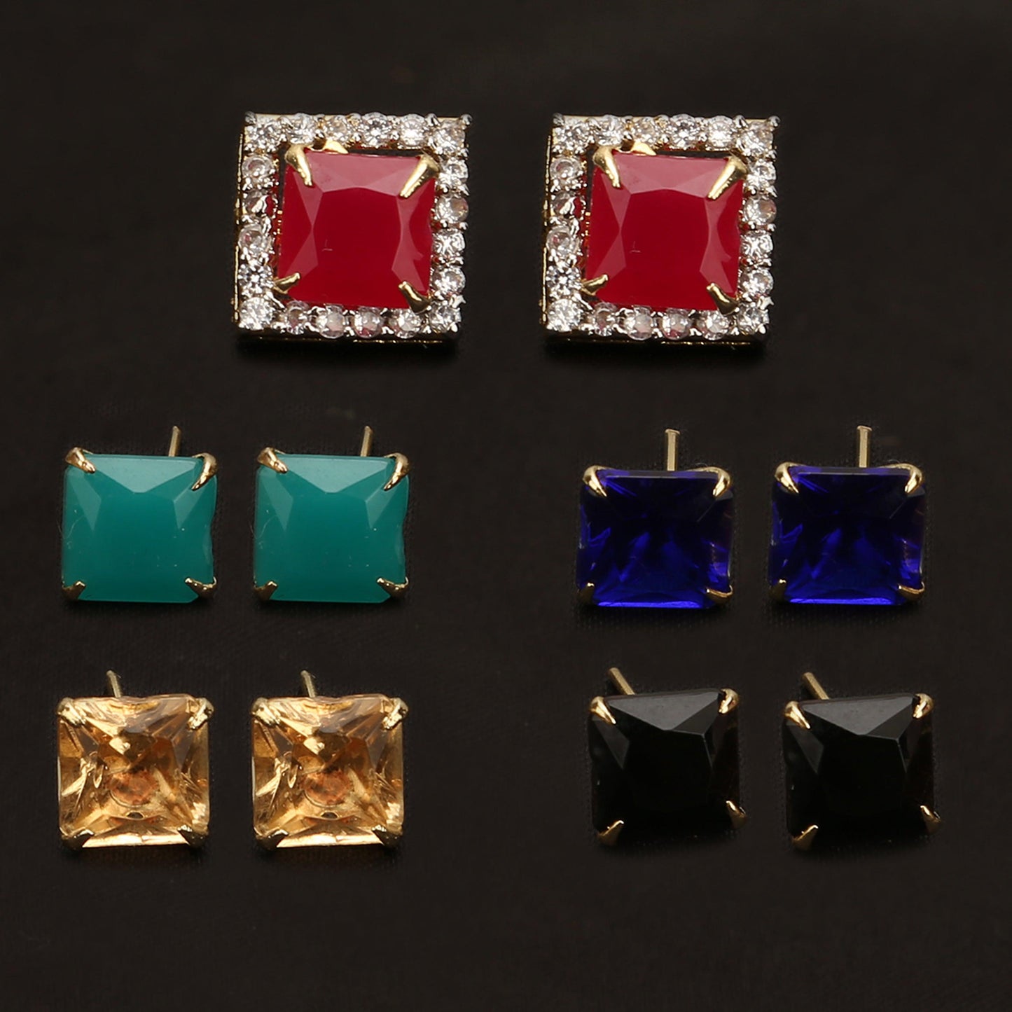Pack of : 2 Earrings with 5 color stone pairs (Rubi, Emerald, Yellow Sapphire, Blue Sapphire, Black Sapphire)