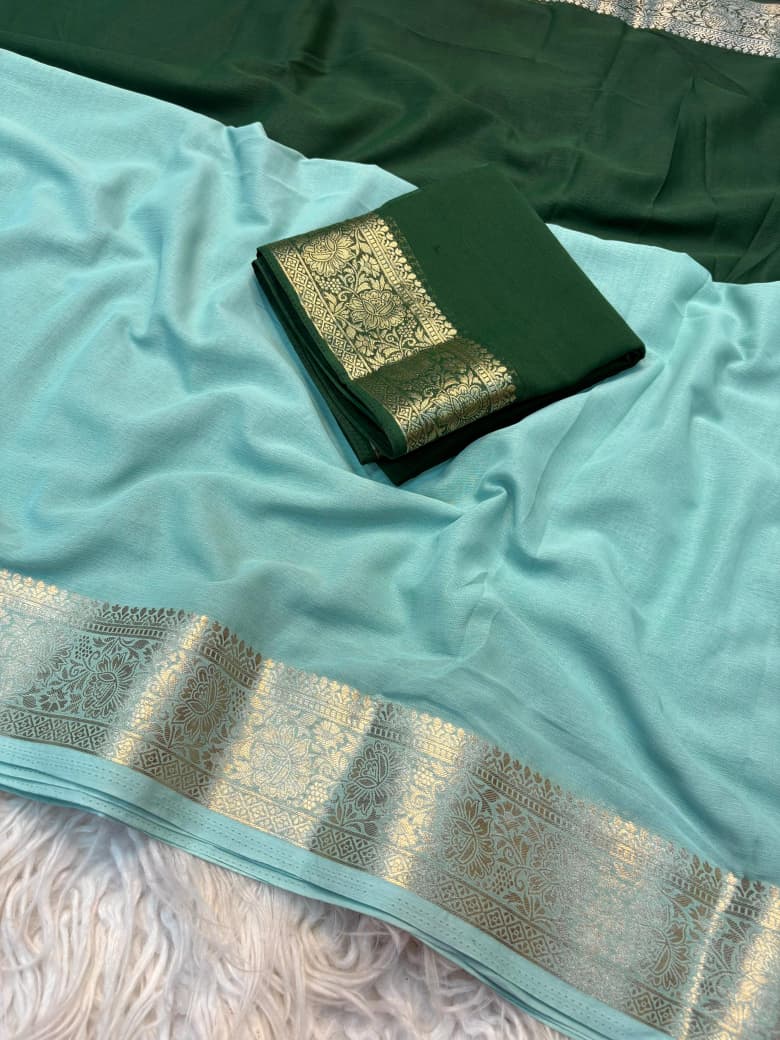 Shaded Chiffon Saree with Jacquard Border & Contrast Blouse