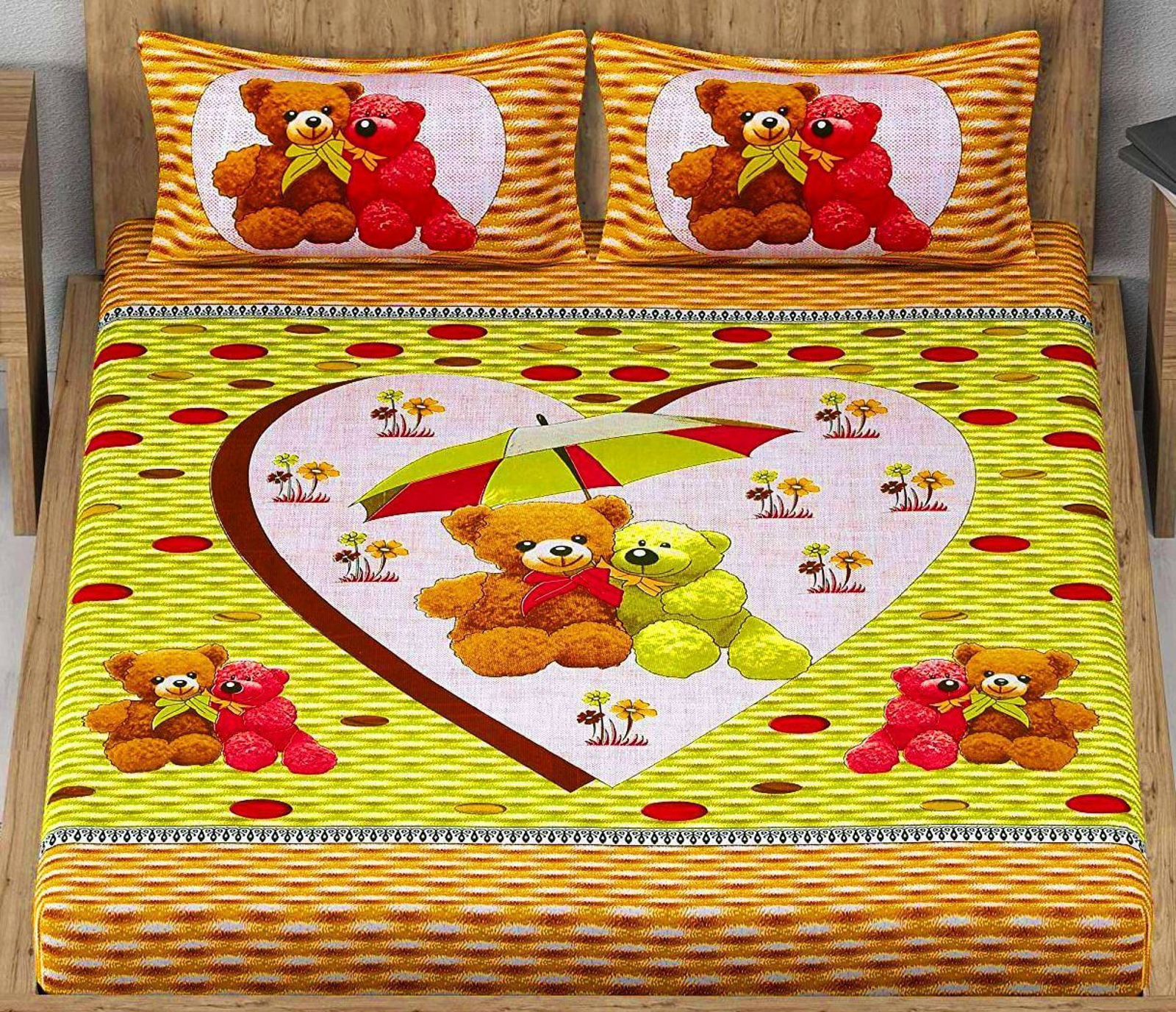 Jaipuri Screen Printed Cotton Double Bed Sheet with 2 Pillow Covers – 90x100 Size