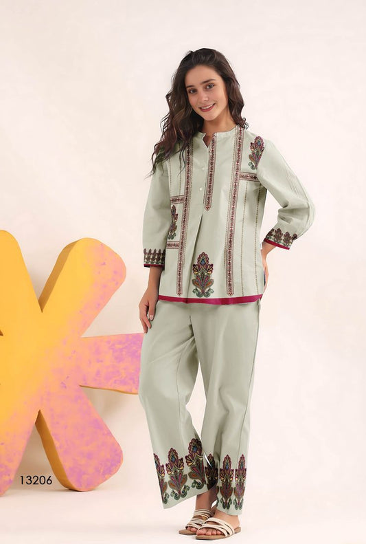 Embroidered Cotton Coord Set for Women | Two-Piece Outfit with Pant
