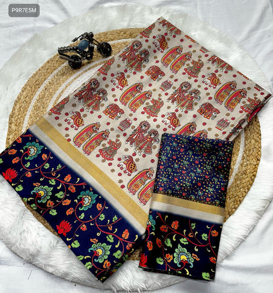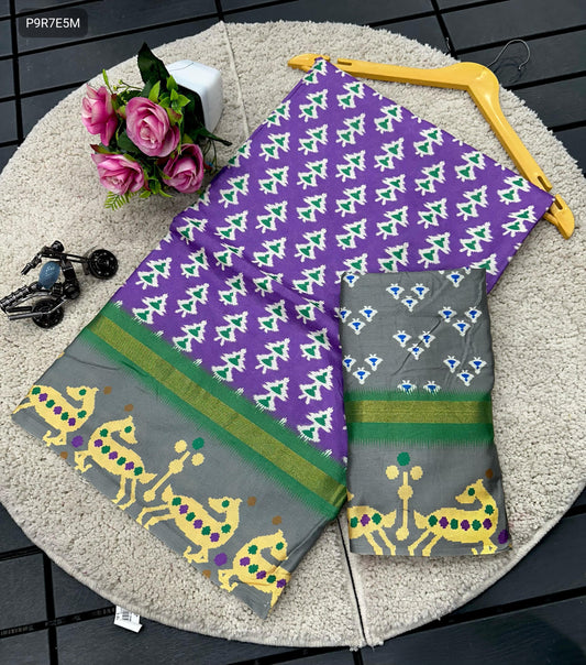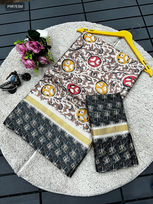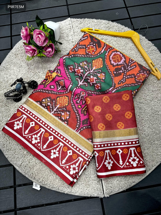 Leheriya Candy Cotton Silk Saree with Jacquard Border & Running Blouse Piece