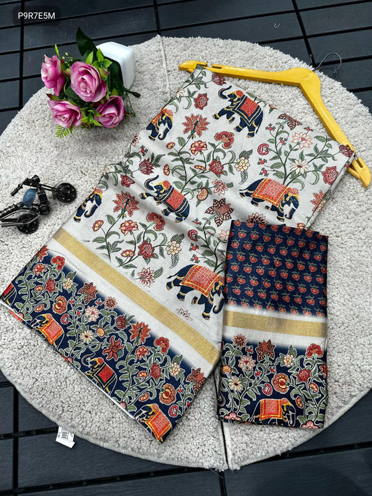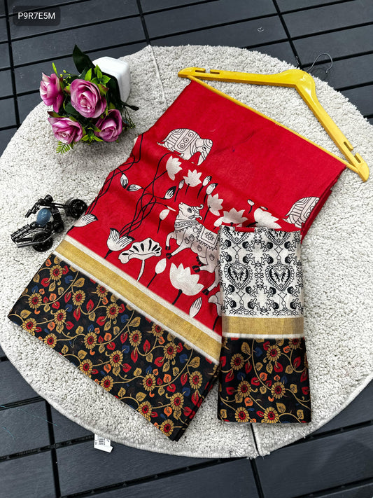 Chanderi Silk Saree with Embroidery & Running Blouse