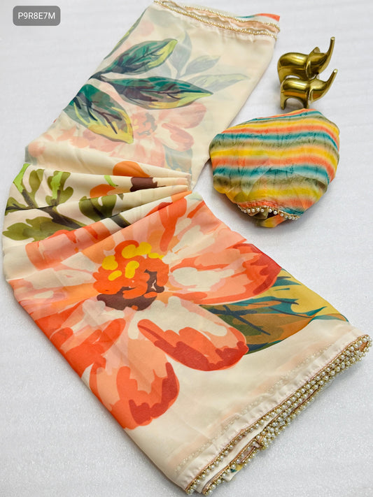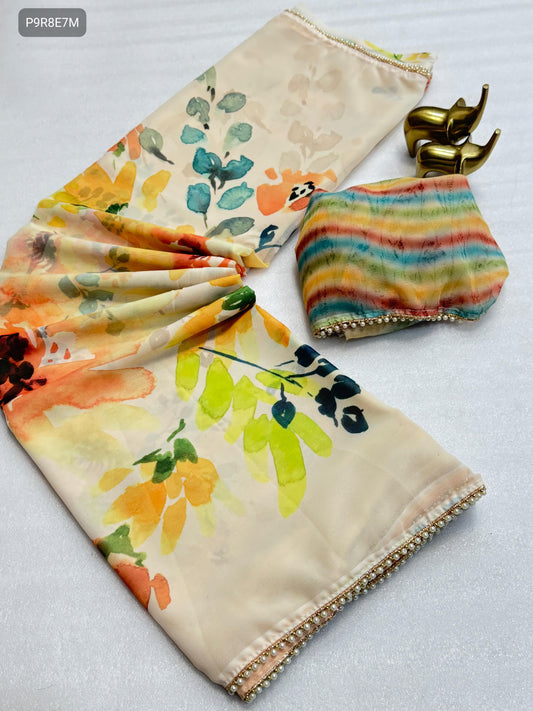Georgette Silk Saree with Matching Weaving Blouse and Intricate Border