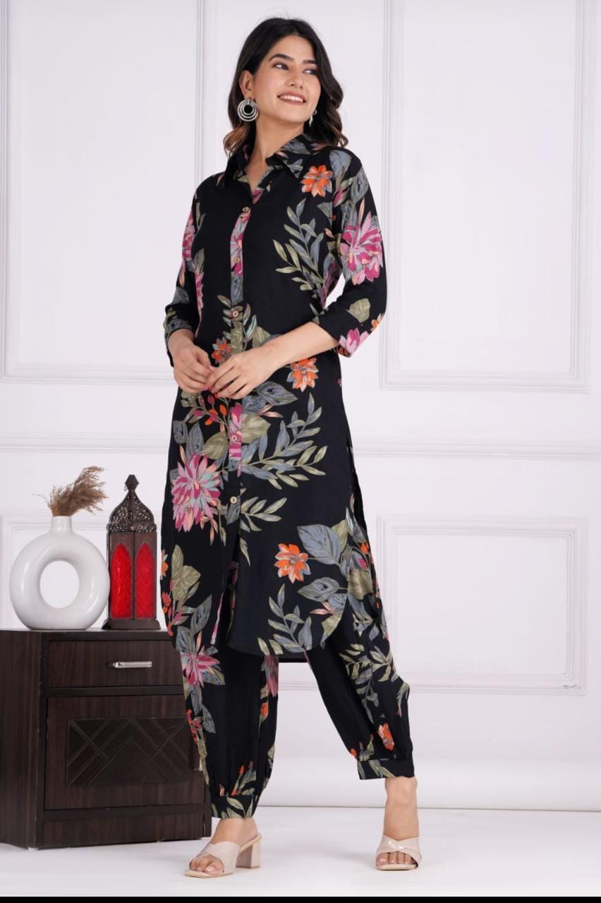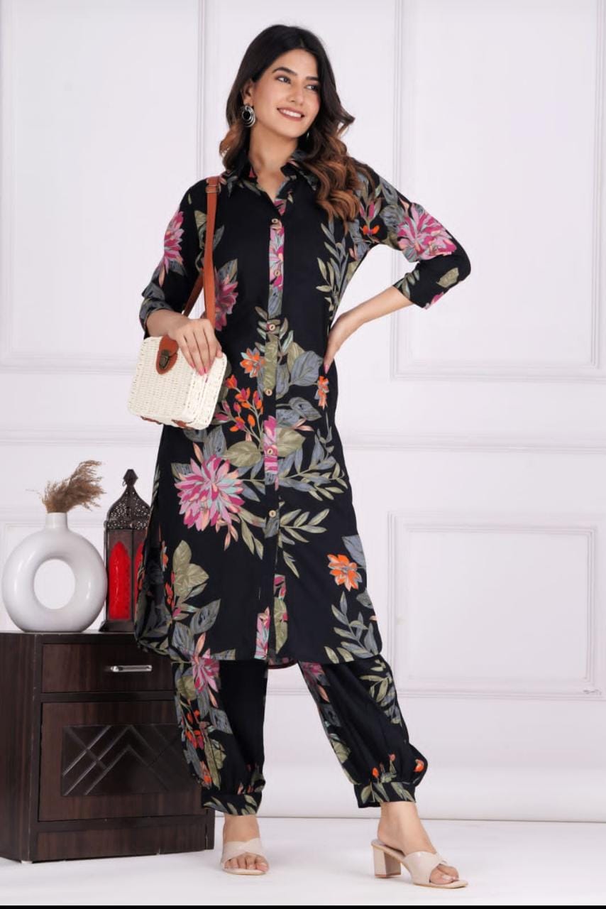 This set includes a beautifully printed kurta and matching corded bottoms, creating a harmonious and chic outfit that reflects your unique personality. Embrace the fusion of tradition and contemporary design, and make a lasting impression with this standout ensemble.