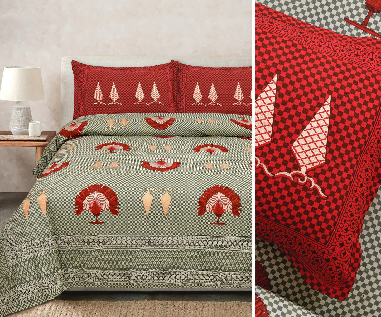 Gold-Print Cotton Bedsheet Set with Coordinated Pillow Covers