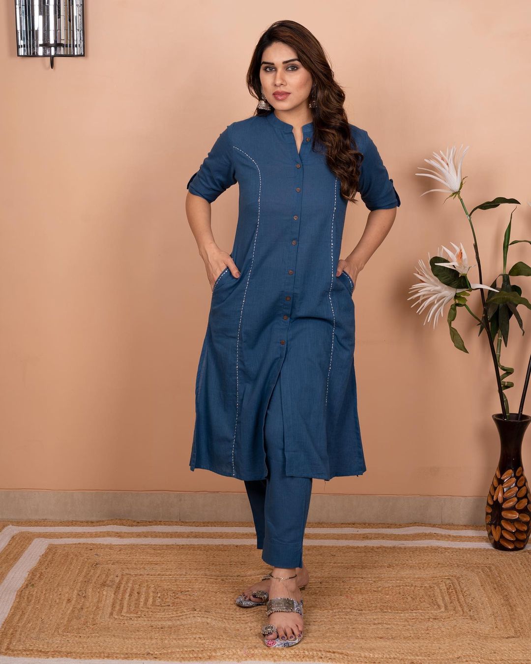 Embroidered Monochrome Cotton Pant-Set with Pockets