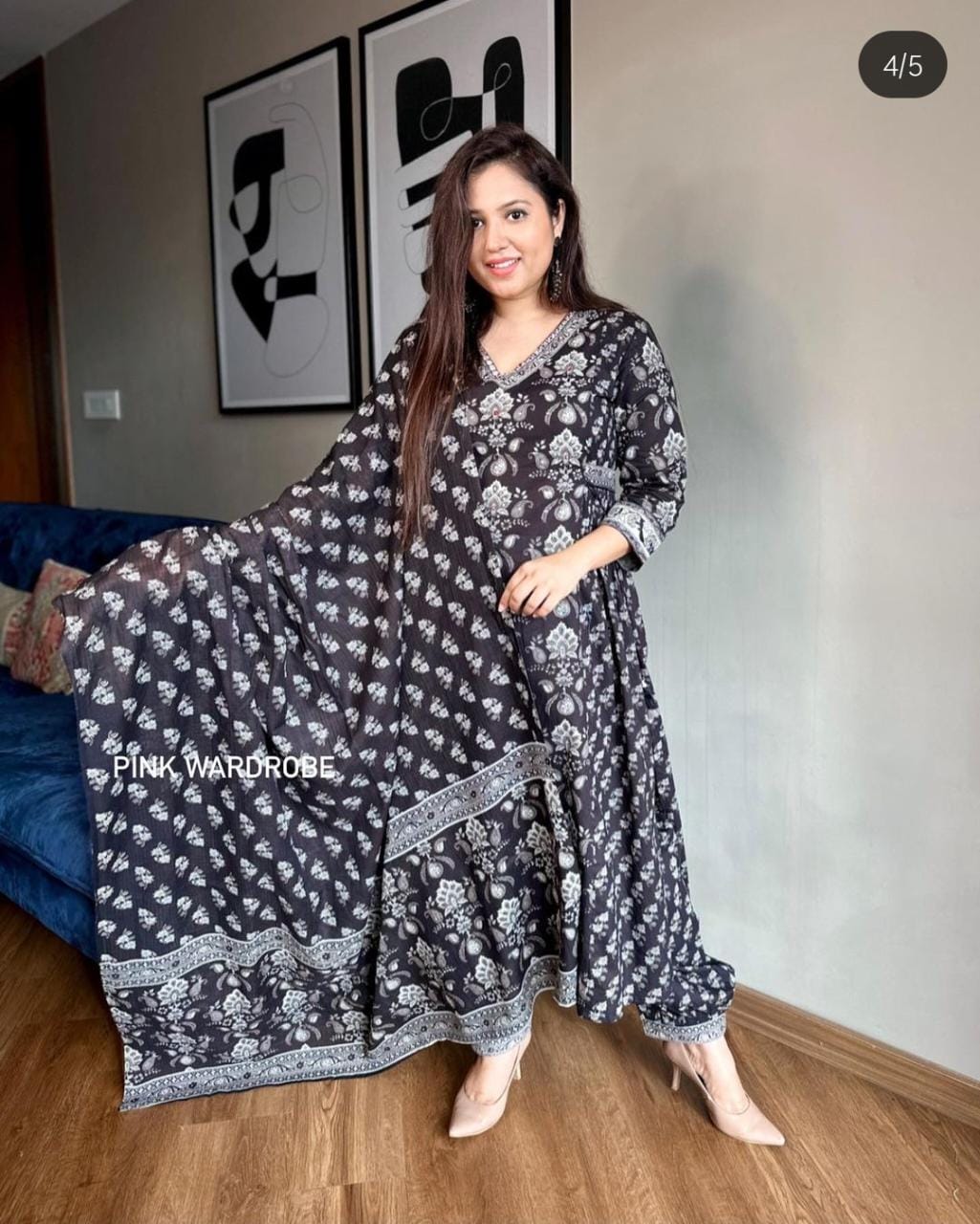 4. Dupatta Delight: The 2.10-meter Rayon Dupatta adds a graceful finishing touch to your ensemble. It can be draped in various styles to suit your mood and occasion.