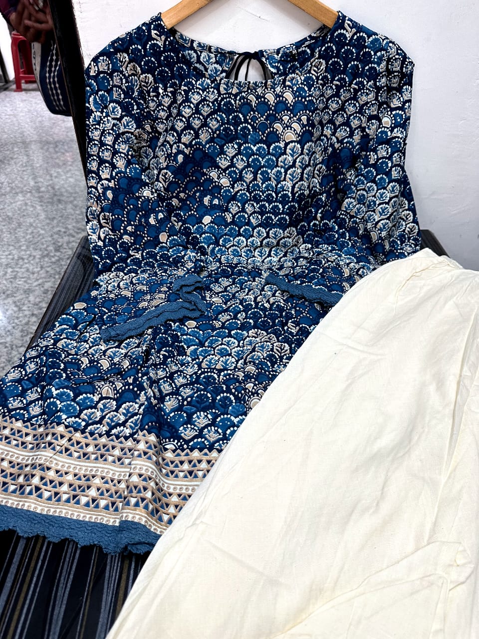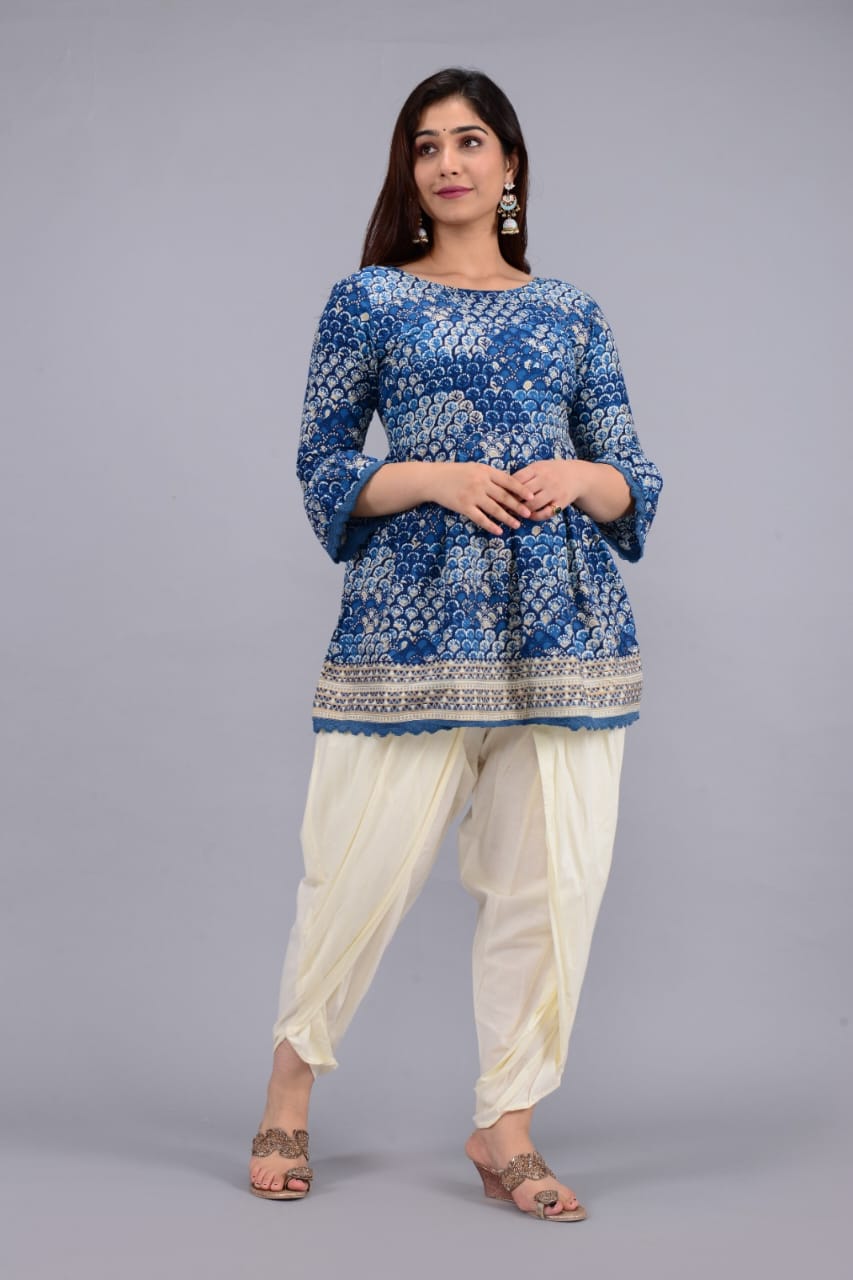 Cotton 60*60 Top and Dhoti Pant Set with 3/4th Sleeves