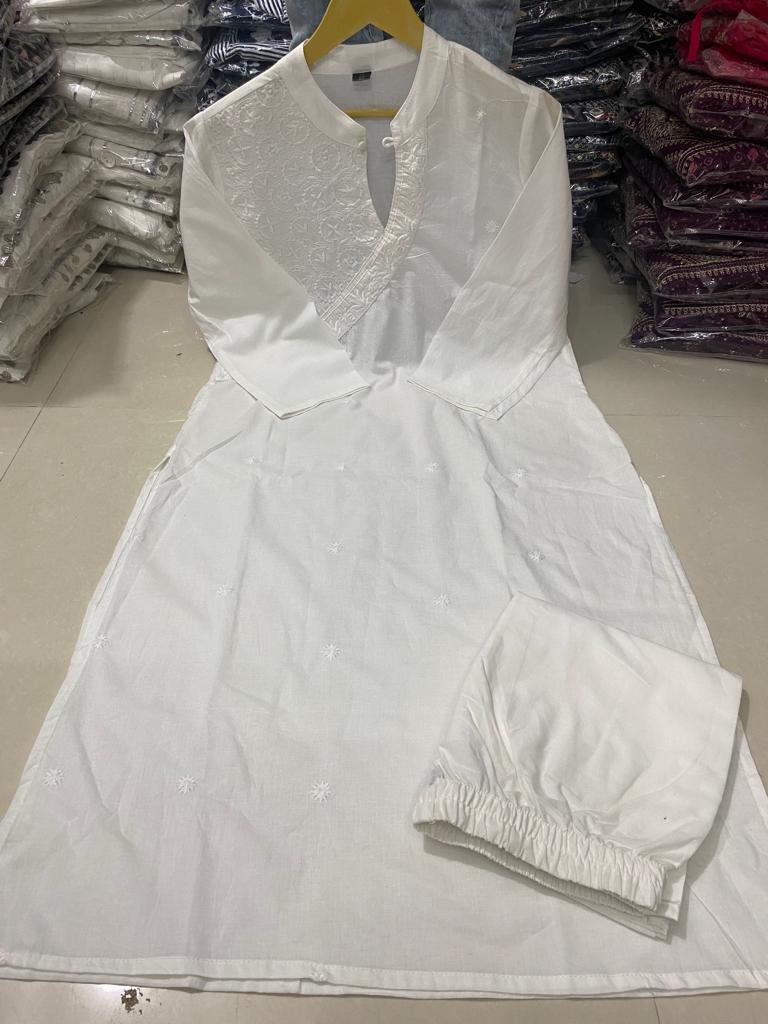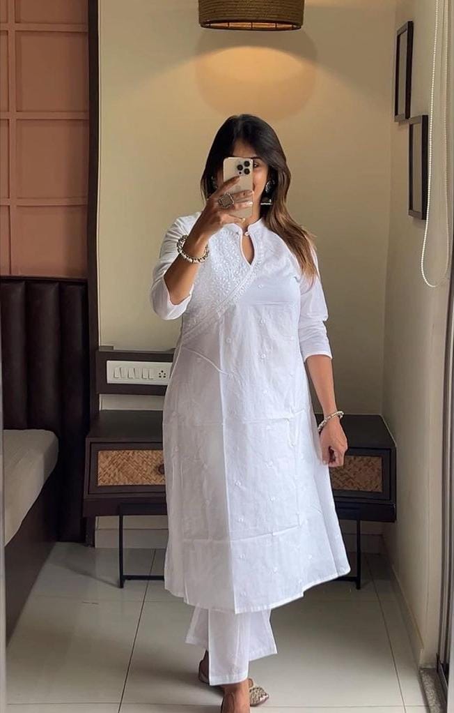 Whether you're heading to a formal event or a casual gathering, or simply want to elevate your everyday look, this kurti and pant set is the ideal choice. Its classic white hue makes it versatile for various occasions, and the breathable cotton fabric ensures all-day comfort.