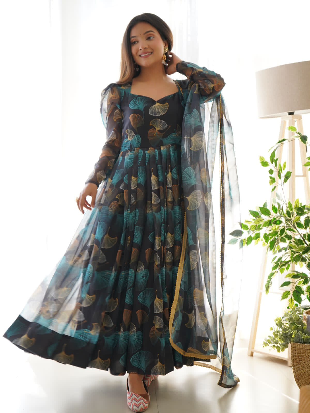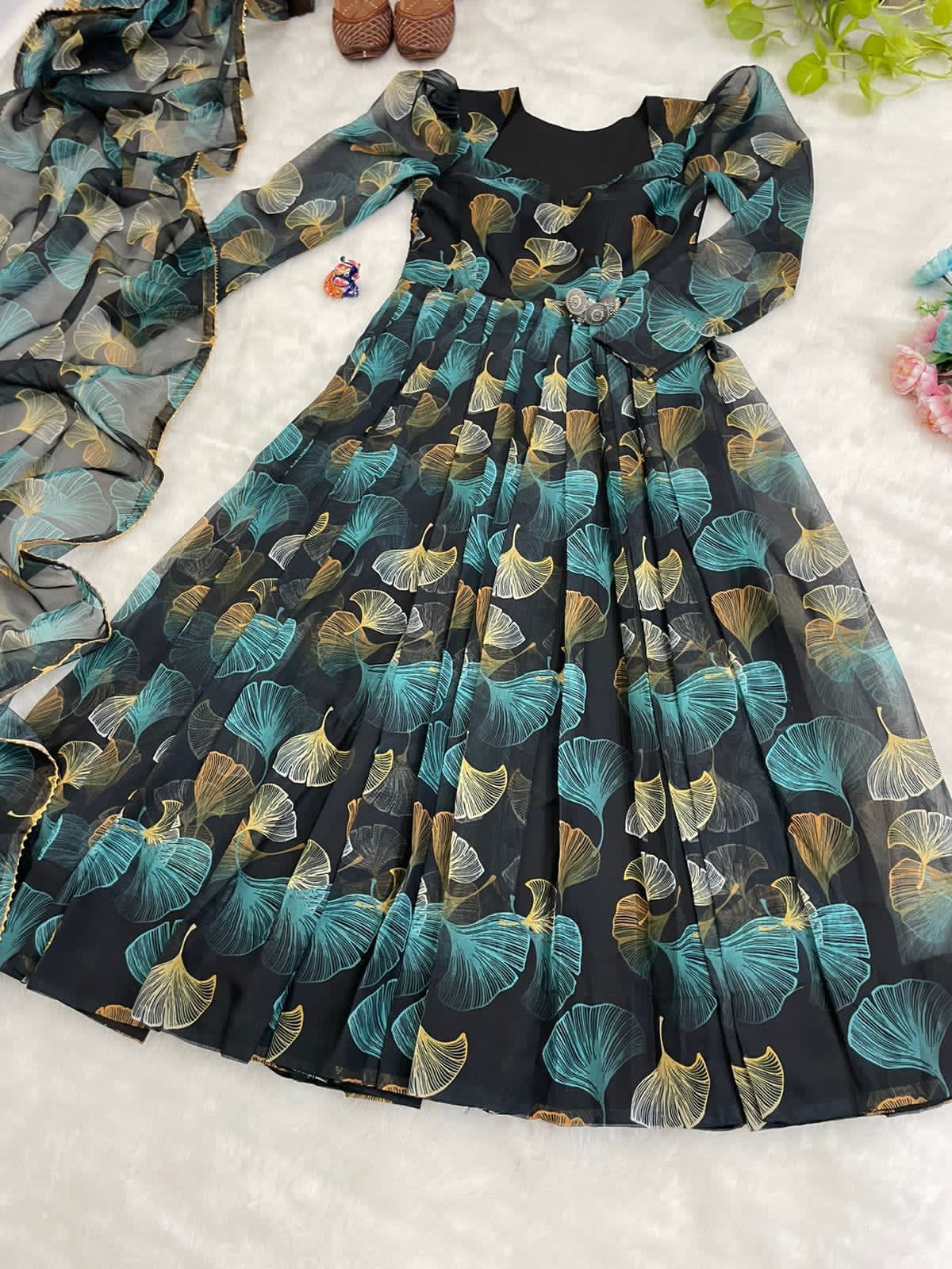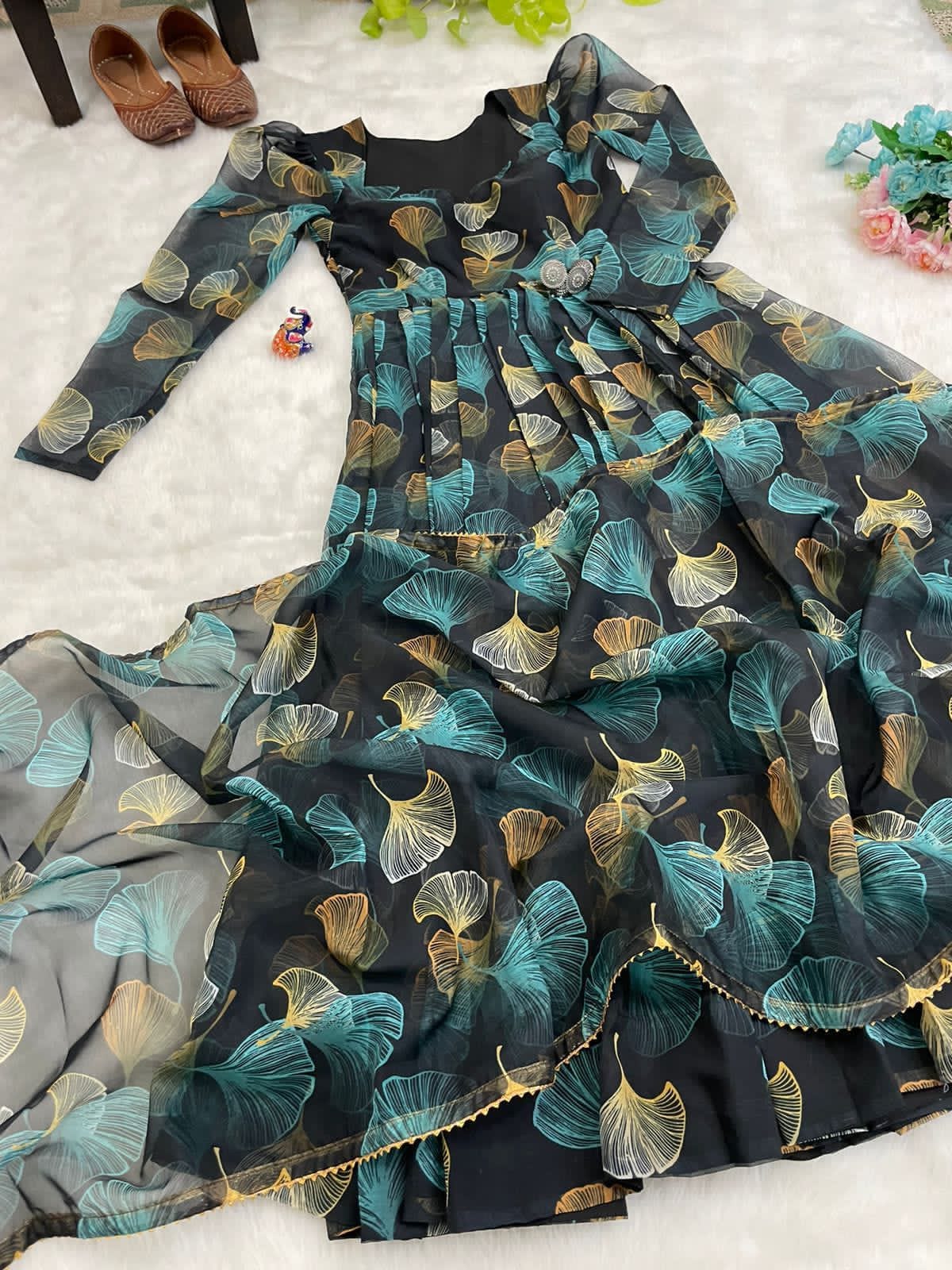 Gown Flair: With a generous 6.5-meter flair, this Anarkali gown exudes elegance and grandeur, allowing you to move gracefully and effortlessly.