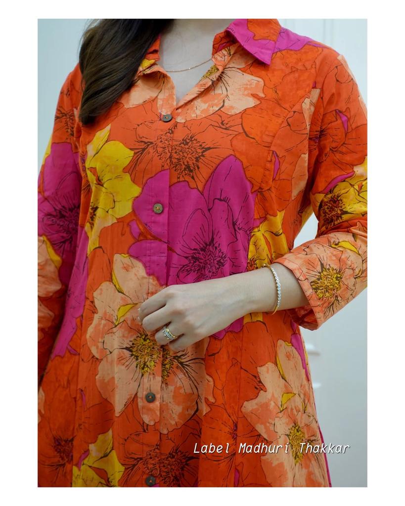 Elevate your style quotient with our stunning Orange Cotton Co-ord Set. This vibrant ensemble combines fashion and comfort effortlessly, making it a must-have addition to your wardrobe.