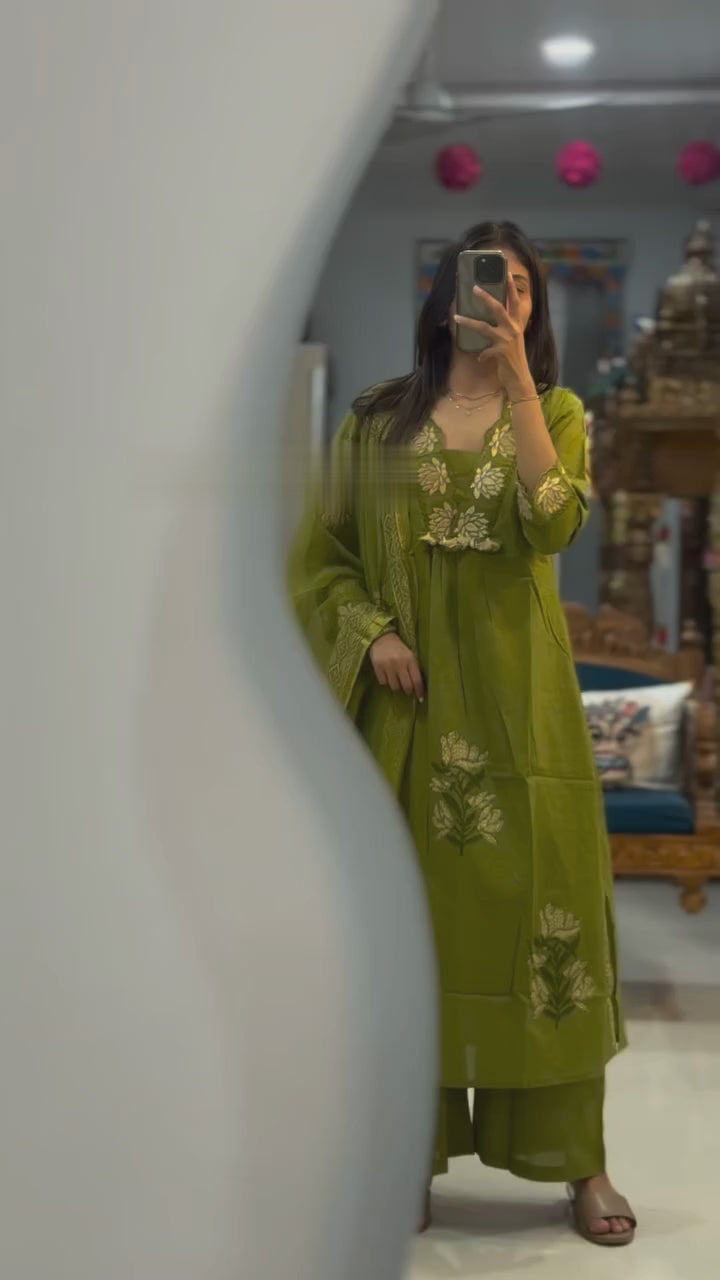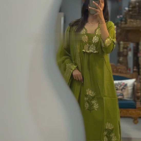Cotton Embroidered Suit Set with Pant & Printed Dupatta