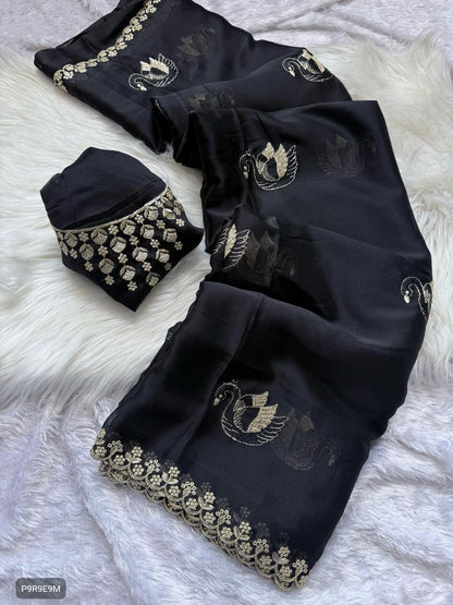 Chanderi Silk Saree with Embroidery & Running Blouse
