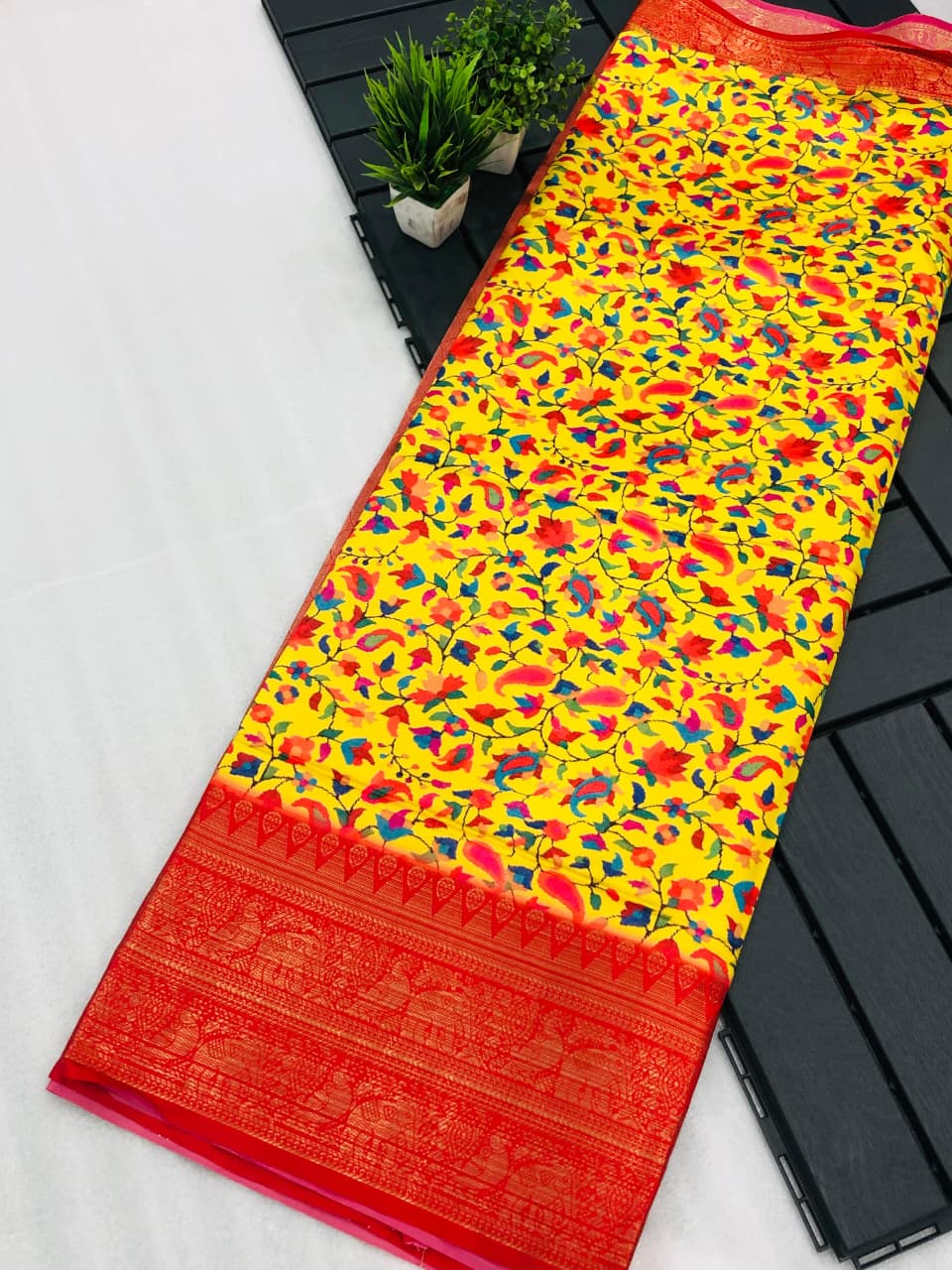 - Premium Banarasi silk saree inspired by traditional Pichwai & Kalamkari art