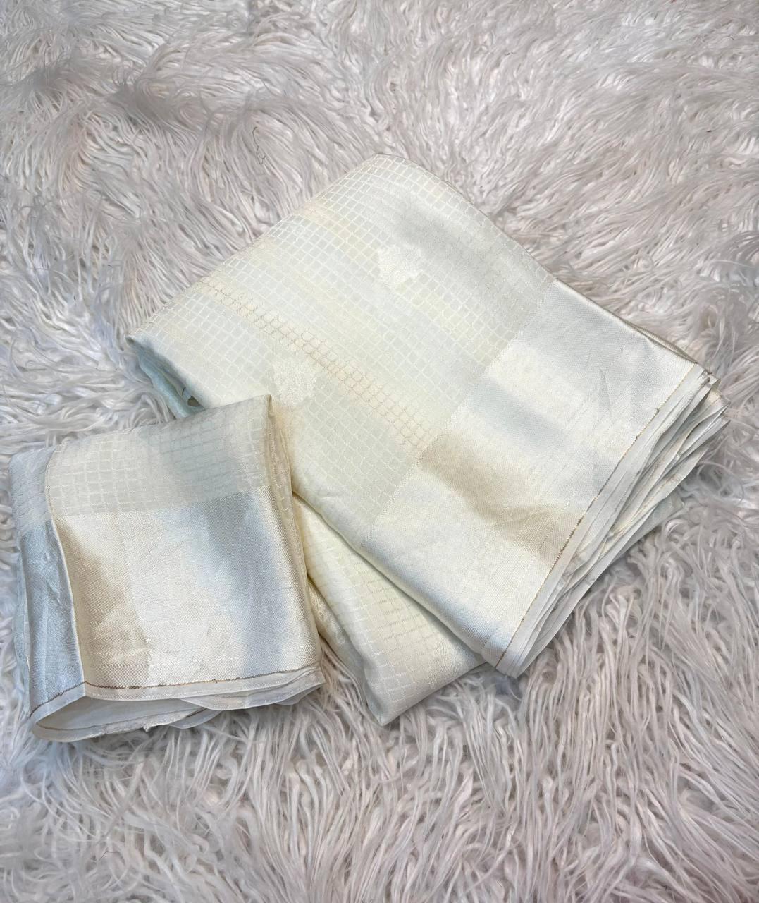 Viscose Chex Saree with Self Butta Jacquard & Satin Border