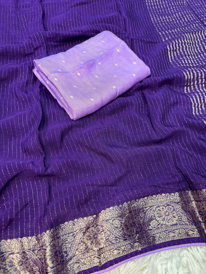 Viscose Chinnon Saree with Jacquard Border & Contrast Blouse