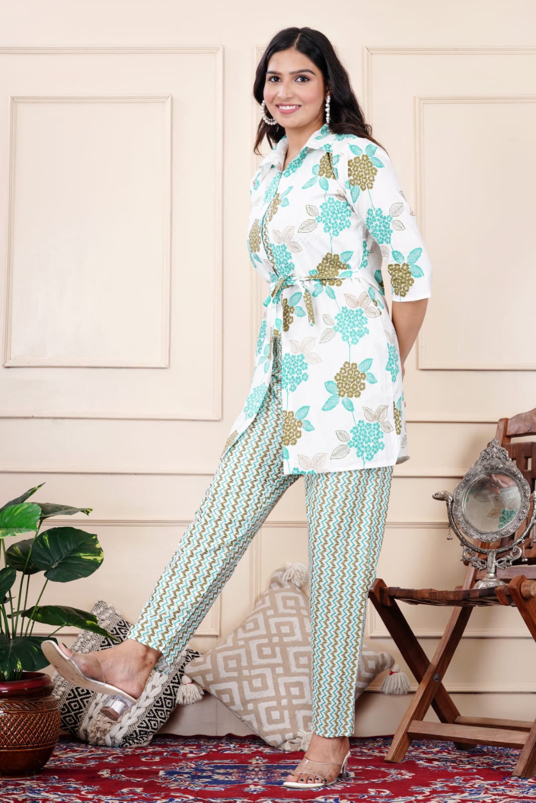 Whether you're heading to a casual outing or a special event, this co-ord set ensures you make a statement wherever you go. Embrace the versatility of this ensemble by pairing the pieces together or mixing and matching them with other wardrobe favorites. Redefine elegance with this Cotton 60*60 Co-ord Set and step out in confidence, showcasing your unique style.