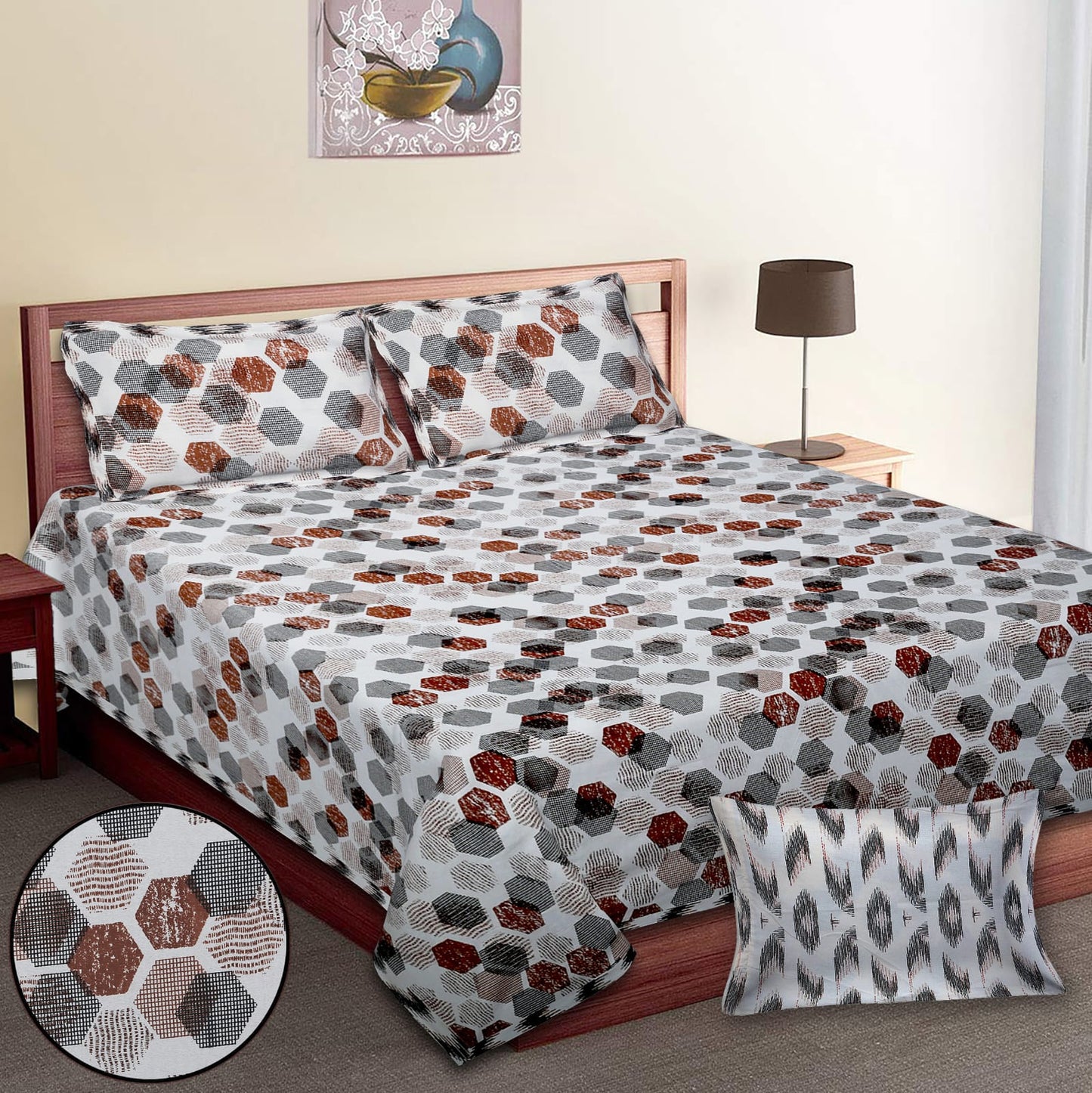 King-Size Bed Sheet Set with 2 Pillow Covers (Cotton Autoloom Fabric)