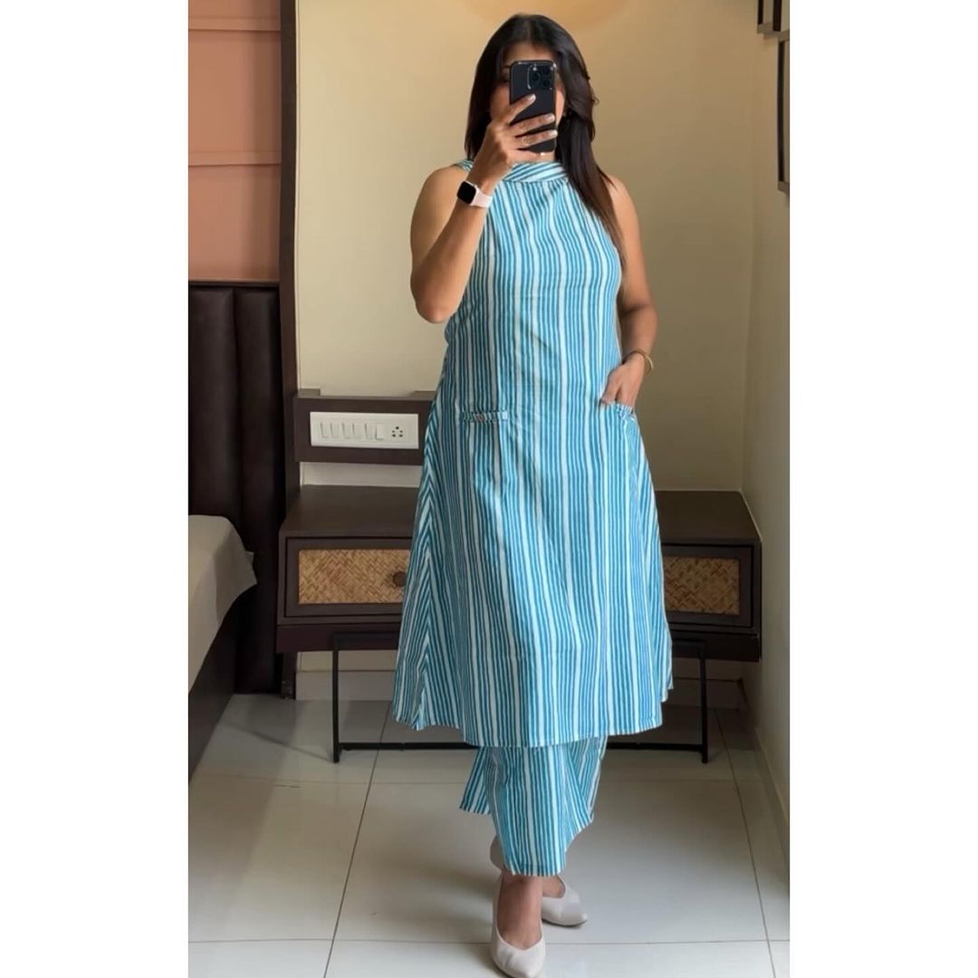 With its comfortable silhouette and charming details, this cotton kurta pant set is a must-have for your summer wardrobe!